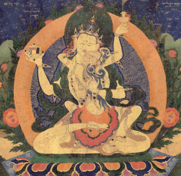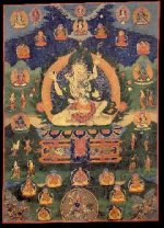 Nineteenth century portrait of the Bon master Drenpa Namkha surrounded by deities and lineage masters.