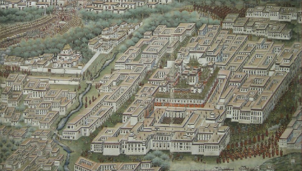 The Lhasa Tsuklakhang, known also as the Jokhang since the eleventh or twelfth century after its sacred inner sanctum, is Tibet's holiest shrine and the heart of the ancient capital city of Lhasa. Some sources attribute the temple to the Tibetan Emperor Songtsen Gampo while others attribute it to his Nepalese wife Queen Brikuti Devi. The Jokhang was built on the model of an early Indian monastery type known as a vihara, and Newari artisans and craftsmen worked on the site; at the time the Nepalese King Narendradeva and his court lived in exile in Lhasa, known then as Rasa, "the Walled City." According to the Fifth Dalai Lama, the Jowo's throne was created by the famed Newar artist Arniko. The Jokhang houses the Jowo, a statue of the Buddha as a young prince, considered the most sacred religious image in Tibet and said to have been brought by Queen Wencheng as part of her dowry. Later histories credit Songtsen Gampo's Chinese wife Queen Wencheng with providing the geomantic planning for the Tsuklakhang but this is unlikely as she arrived in Lhasa only in 641 when the Newaris had already departed.