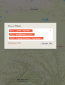 Create a custom map view by choosing place records. Geodata exportable in CSV format.